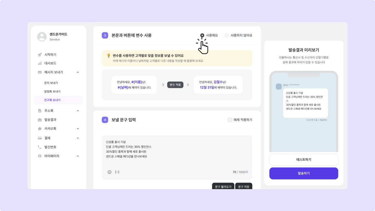 3. 변수 설정해 보낼 문구 입력하기