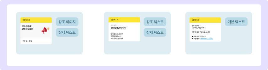 알림톡은 정보성 메시지를 발송할 수 있는 서비스이기 때문에, 사전에 내용 검수가 필요해요. \