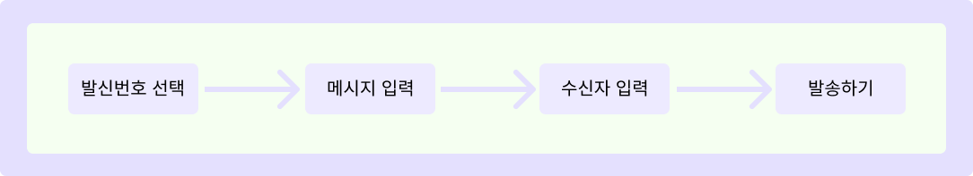 메시지 발송을 위해 최소한의 단계를 거치도록 준비했어요. 화면에서 보이는 단계를 위에서 아래로 순서대로 진행하시면 문자를 발송할 수 있어요.